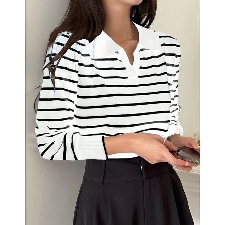 Striped V Neck Top